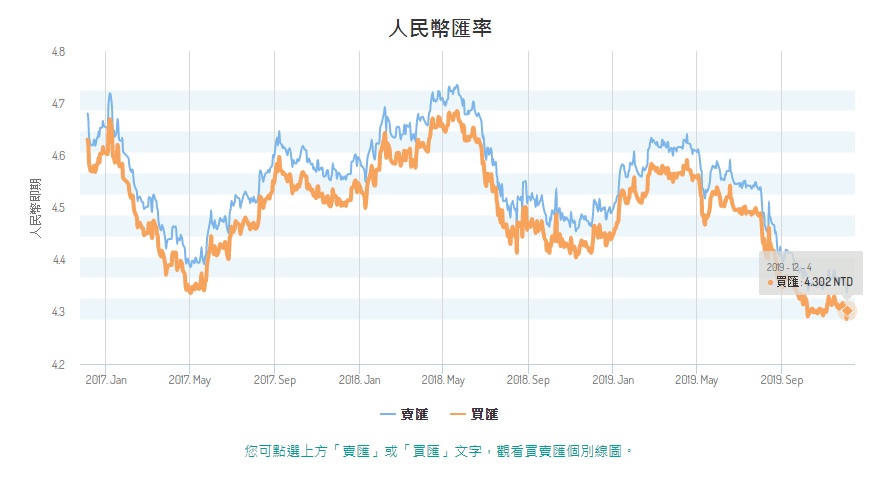 2019.12.05 以兩年線來看,RMB今天真的是很便宜啊!今天的定存利率為2.4%