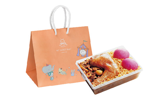 因為訂的時間有點晚,最後決定訂購五十份的一之鄉<富貴油飯>.其中有三份,因為同事吃素,改訂<素齋油飯禮盒>,也是一之鄉的.